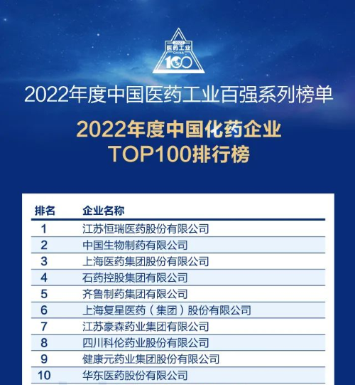 佳音频传!Ag尊龙凯时医药再次蝉联中国化药企业百强榜首